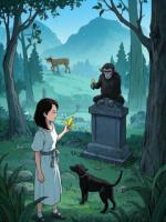 一旁趴着的黑狗和大鹅,一面笑话着猴子的狼吞虎咽,一面眼眸中又流露着渴望。
